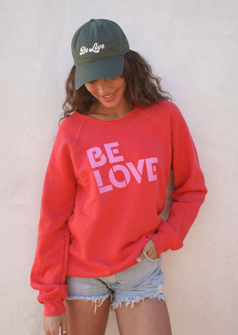 'Be Love' Oversized Off the Shoulder Sweatshirt - Coral