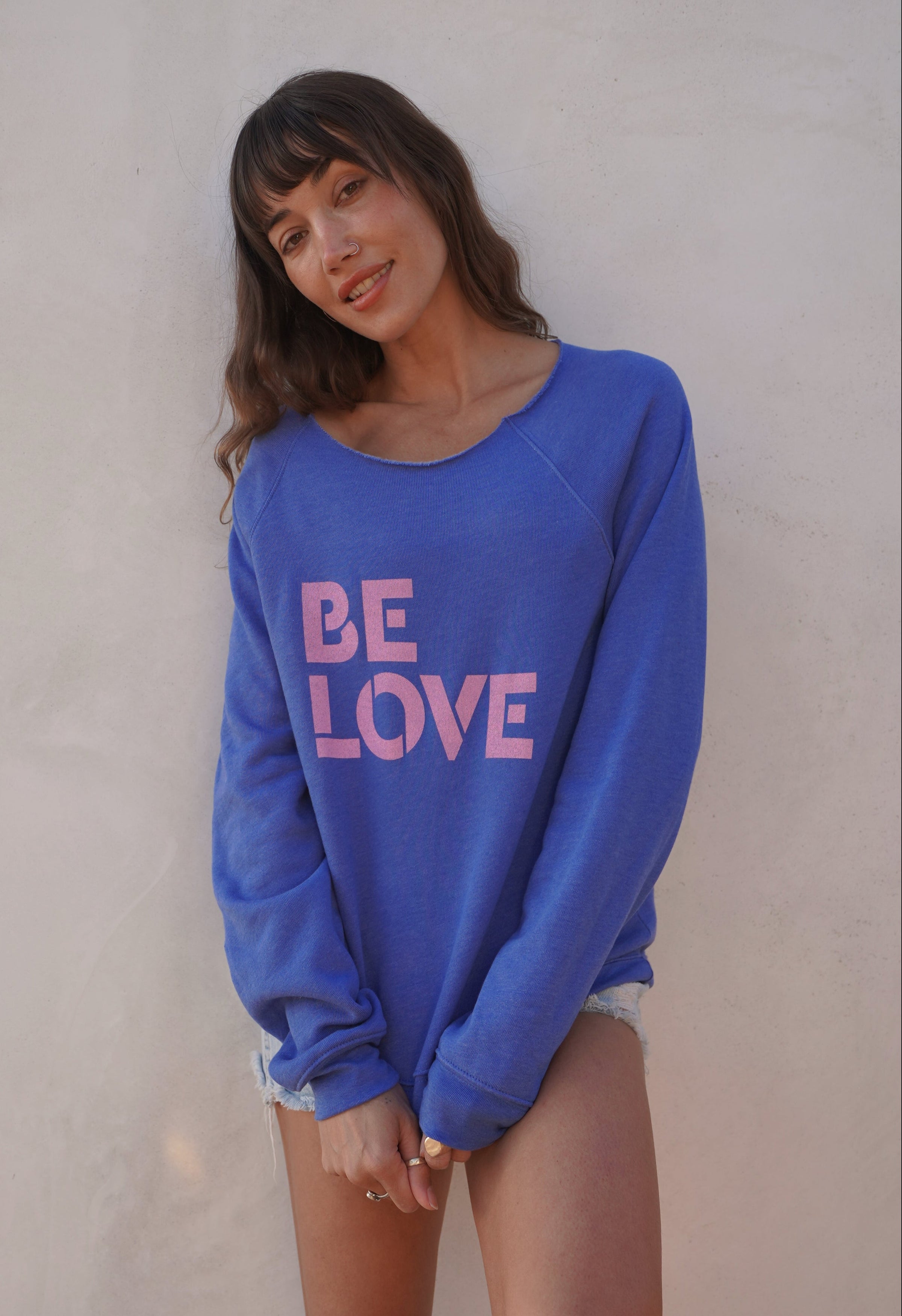 'Be Love' Oversized Off the Shoulder Sweatshirt - Periwinkle Blue
