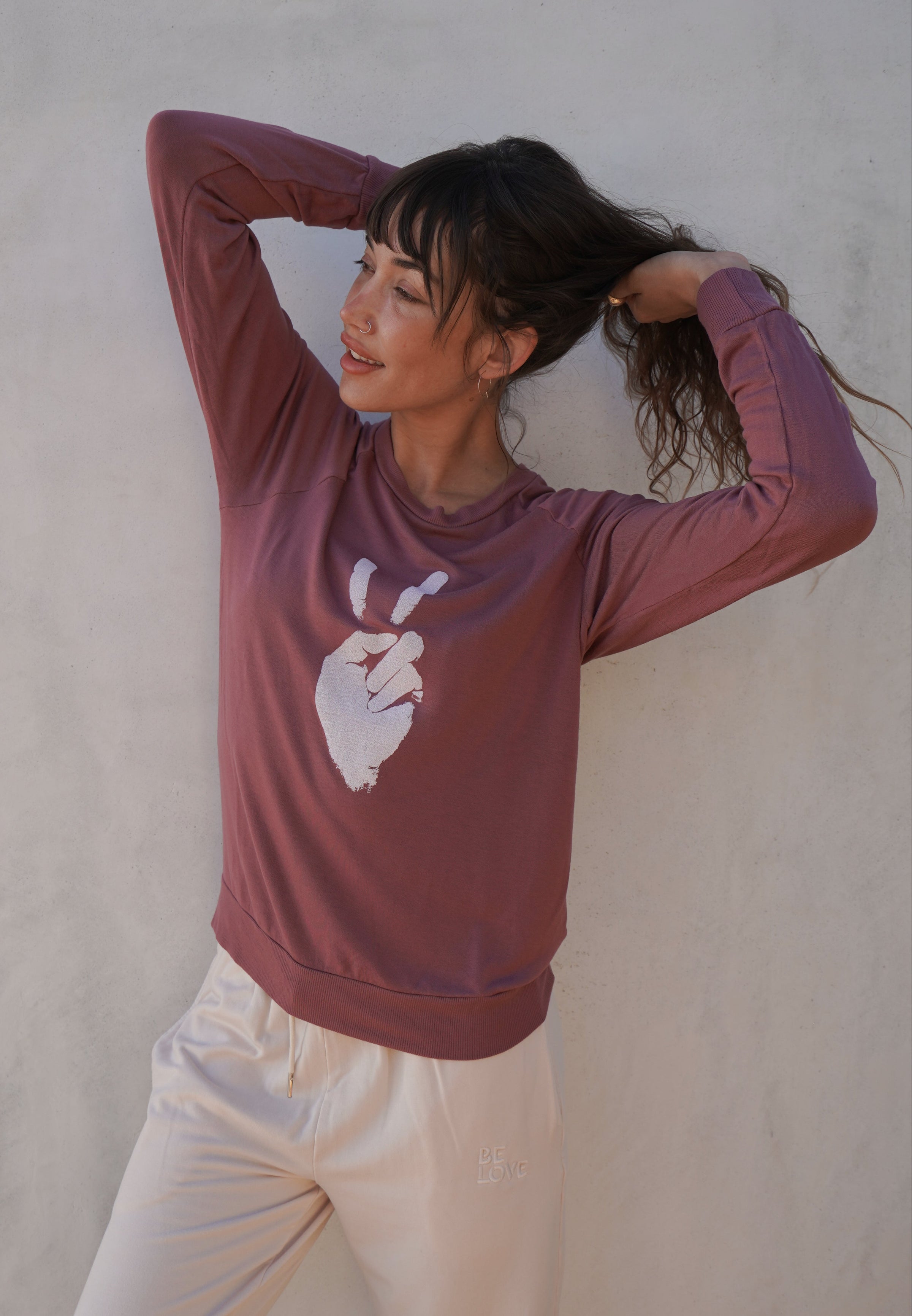 'Peace Sign' Ultra-Soft Raglan Pullover - mauve