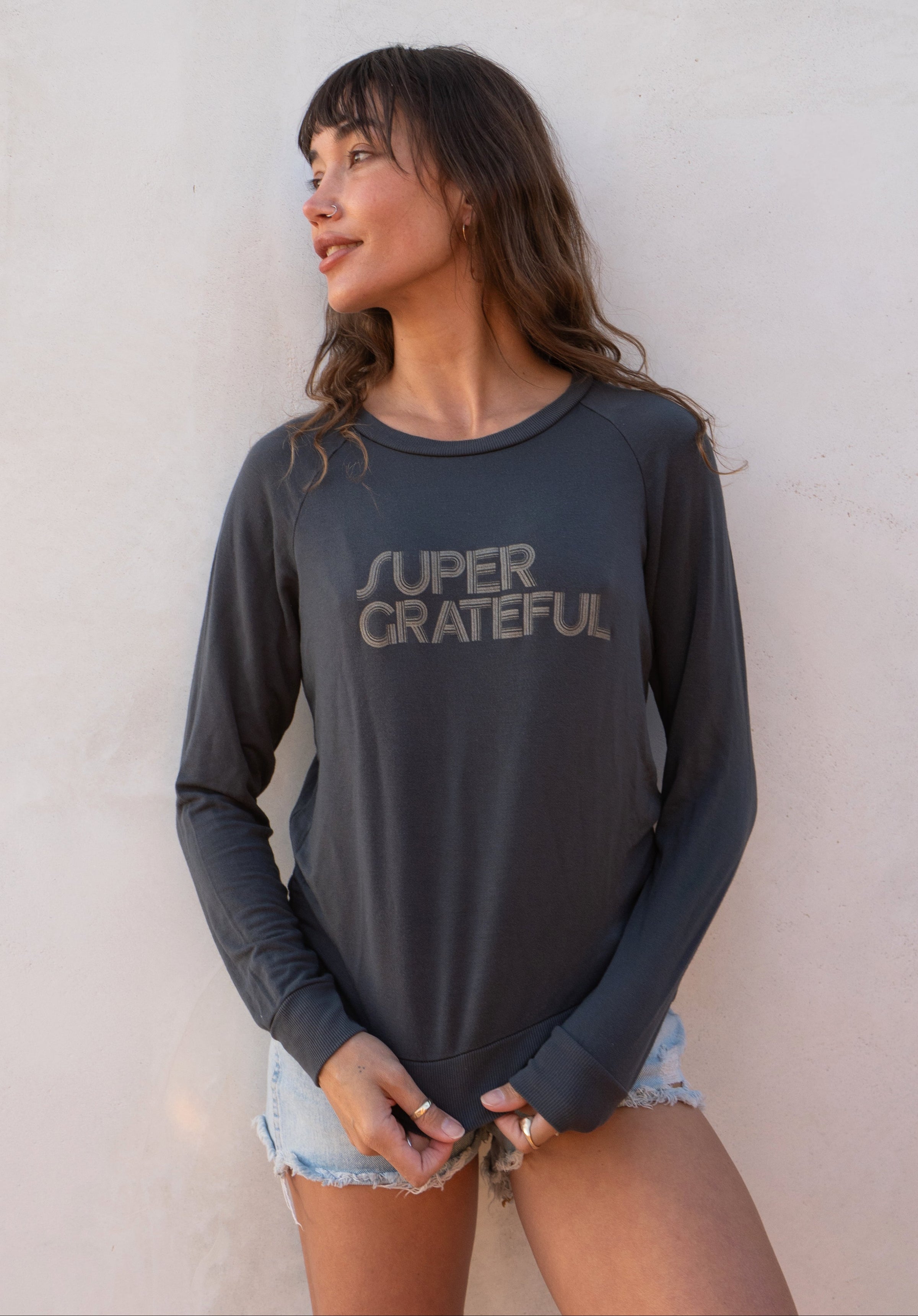 'Super Grateful' Ultra-Soft Raglan Pullover - Deep Sea