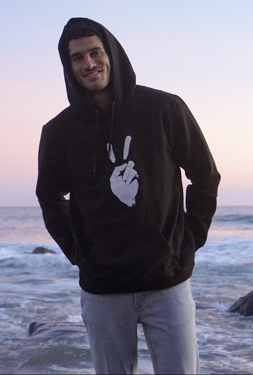 'PEACE SIGN' - Heavyweight Cotton Fleece - Hooded Sweatshirt - Black