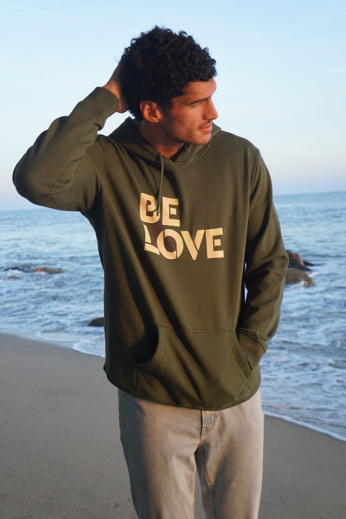 'BE LOVE' Heavyweight Cotton Fleece - Hooded Sweatshirt - Ivy