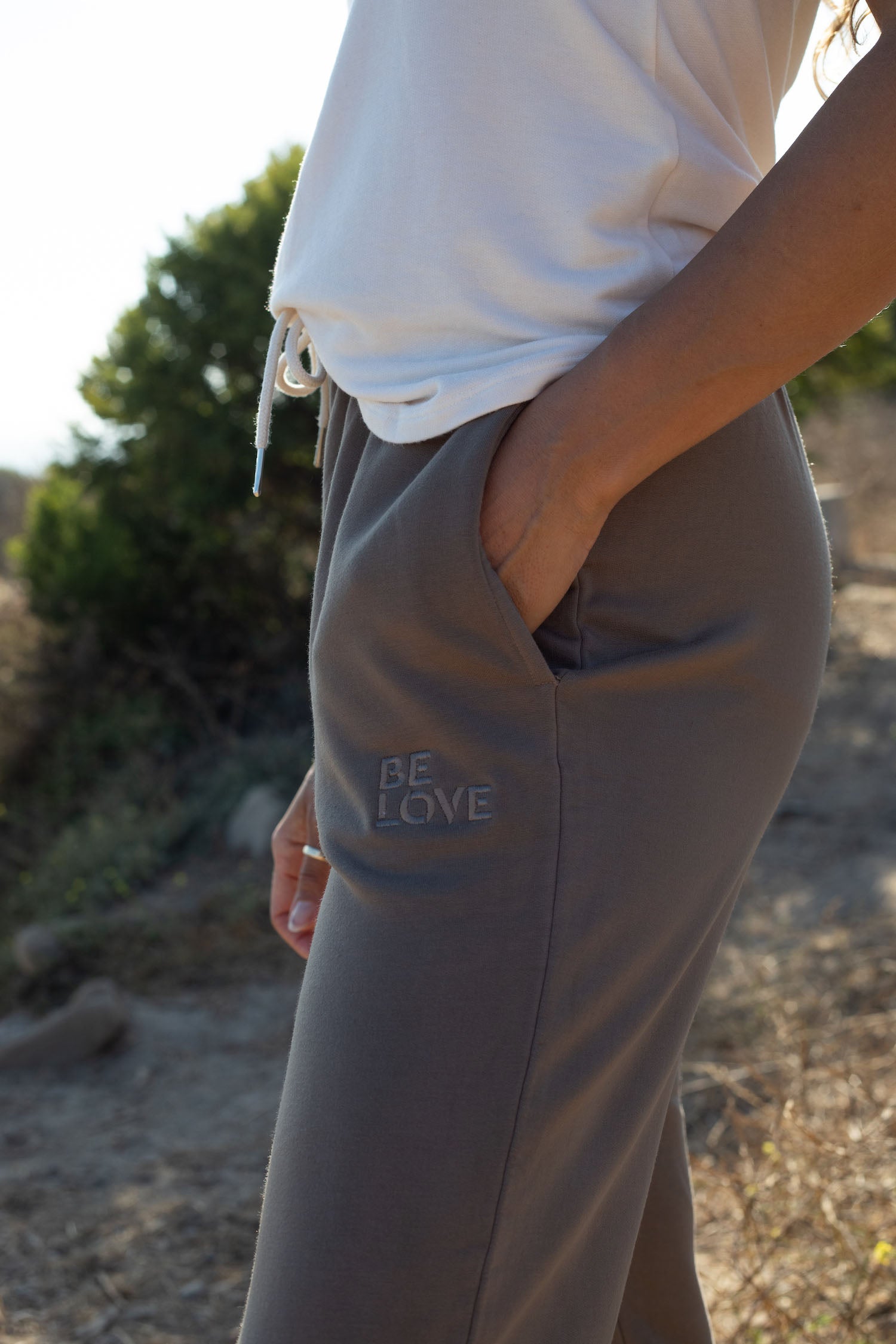 OVERVIEW: Nothing compares. This is the softest, comfiest jogger pant you've ever felt. You will fall in love at first touch! We have added a sweet & subtle embroidery to remind us to Be Love!! Ethically made in Los Angeles with a blend of cotton and sustainable brushed modal fleece.
