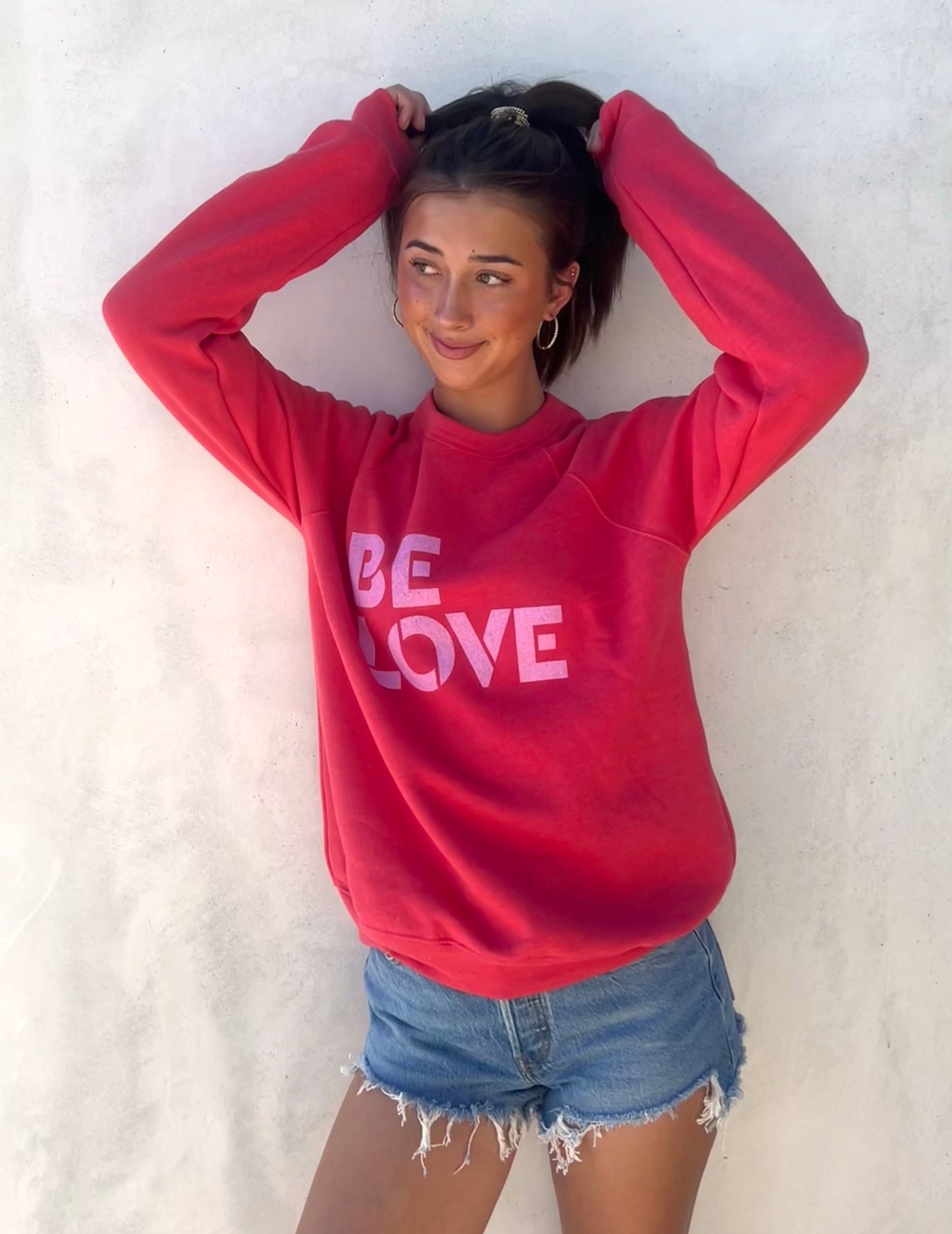 'Be Love' Oversized Crewneck Sweatshirt - Coral
